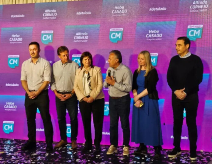 El gobernador electo de Mendoza, Alfredo Cornejo, celebró su triunfo en los comicios provinciales y le pidió a los argentinos que voten por Patricia Bullrich, candidata presidencial de Juntos por el Cambio, que lo acompañó en el escenario.